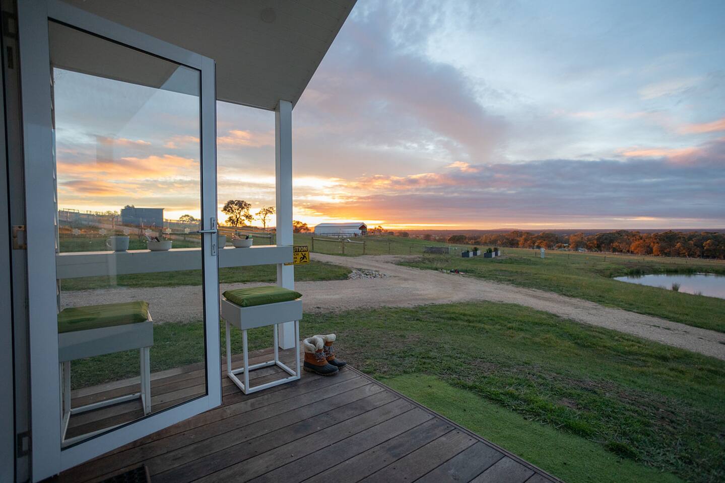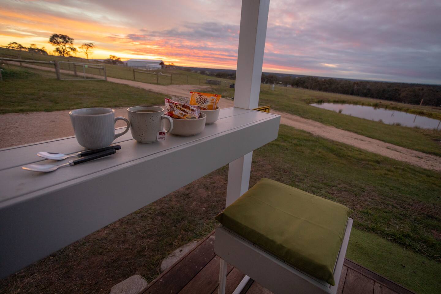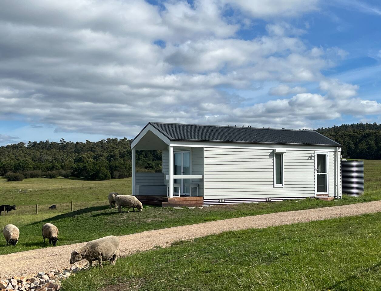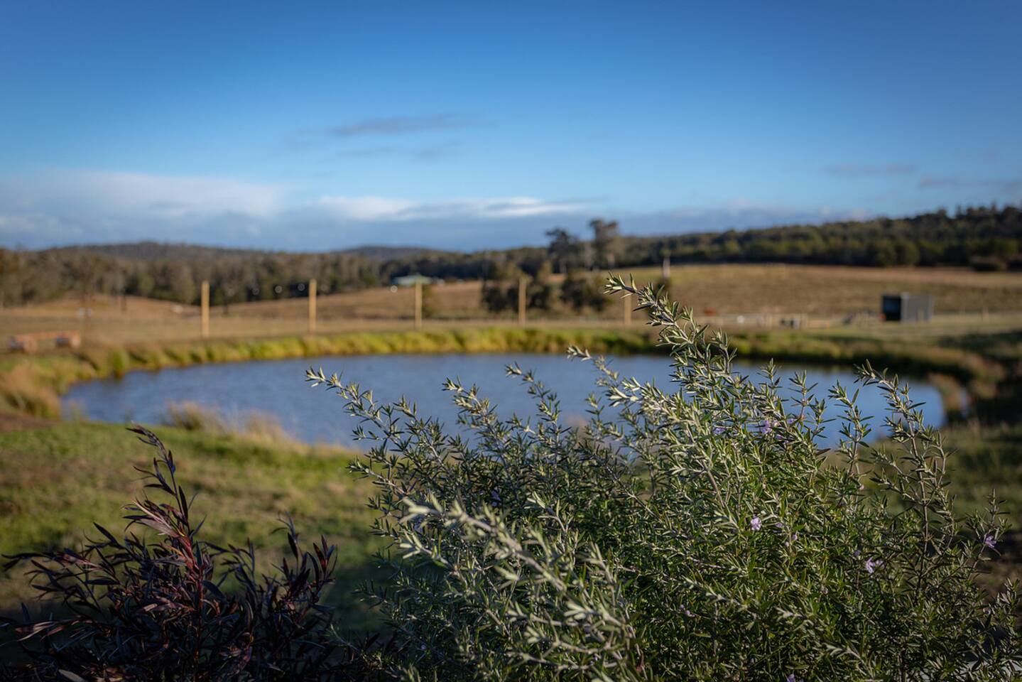 Set among rolling hills overlooking a wildlife pond, Banjo’s Cabin Gippsland offers a relaxed escape in Central Gippsland. Wake to sunny mornings at your outdoor brekkie bar, wander bush trails to nearby water holes or explore historic country towns. Enjoy Tinamba’s renowned dining, visit local wineries and breweries or settle into friendly country pubs. As evening falls, return for sunset drinks on the deck, spotting kangaroos as festoon lights reflect on the water beneath wide, starry skies.