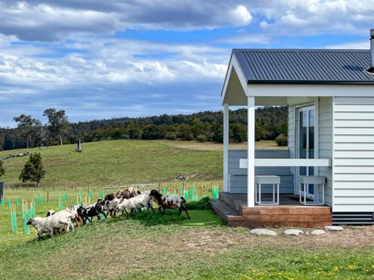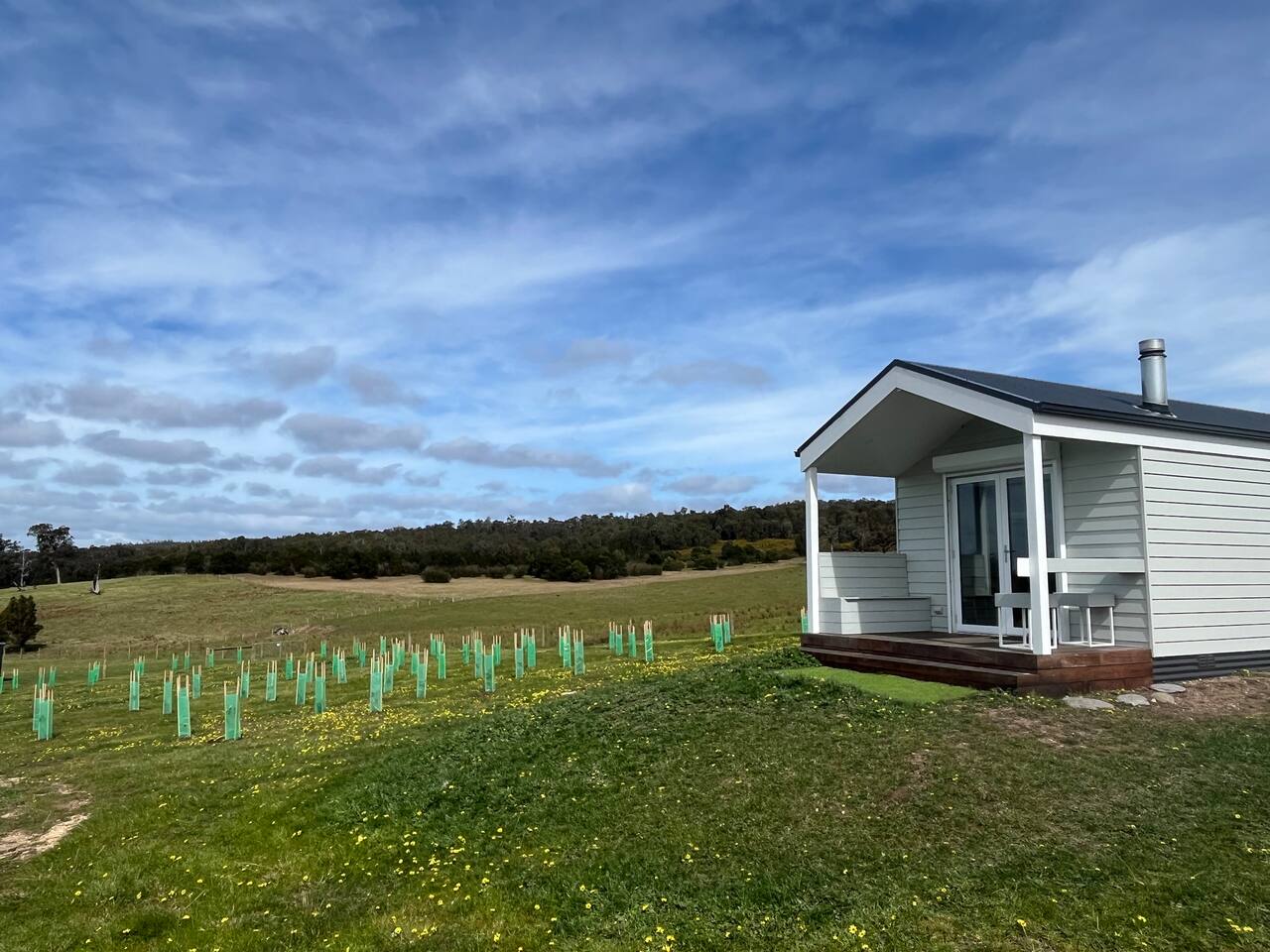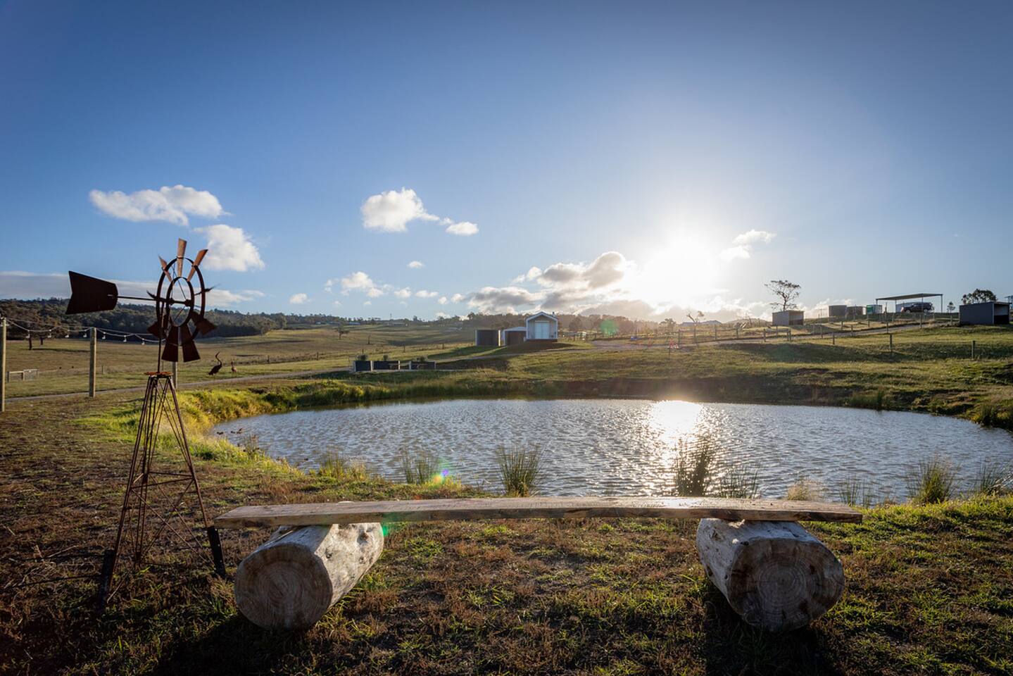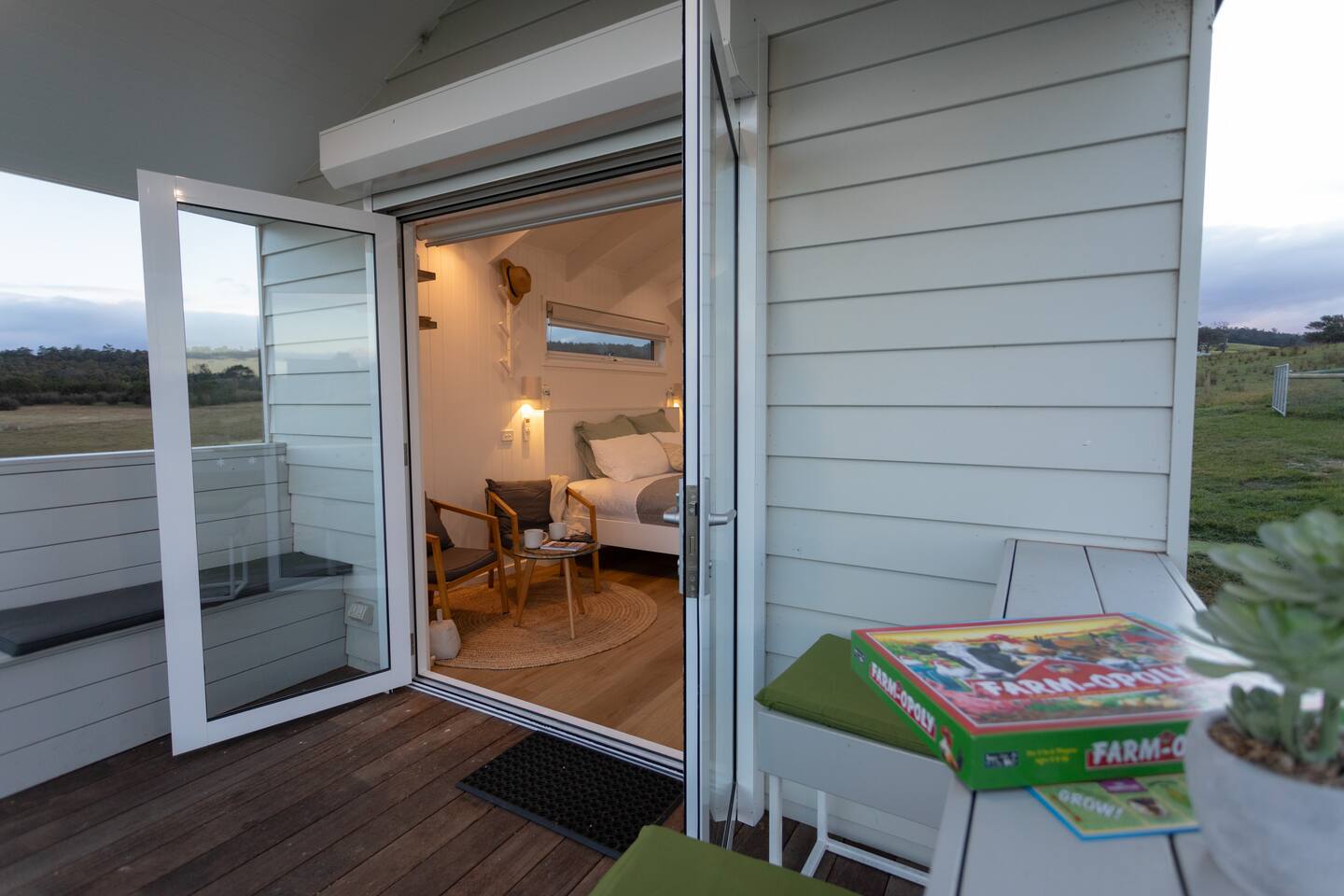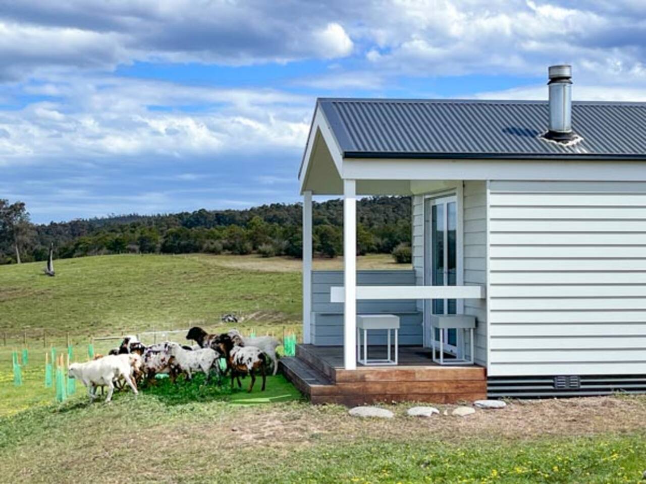 Set among rolling hills overlooking a wildlife pond, Banjo’s Cabin Gippsland offers a relaxed escape in Central Gippsland. Wake to sunny mornings at your outdoor brekkie bar, wander bush trails to nearby water holes or explore historic country towns. Enjoy Tinamba’s renowned dining, visit local wineries and breweries or settle into friendly country pubs. As evening falls, return for sunset drinks on the deck, spotting kangaroos as festoon lights reflect on the water beneath wide, starry skies.