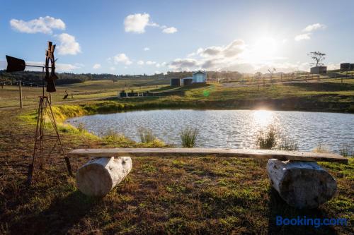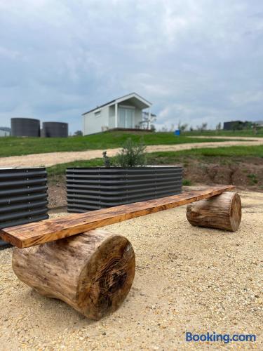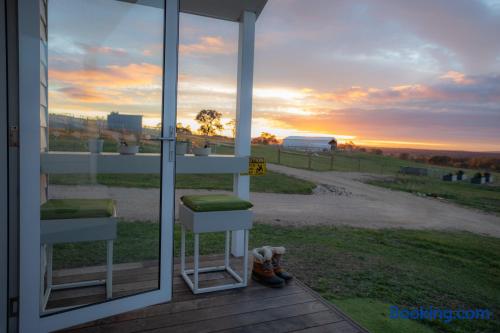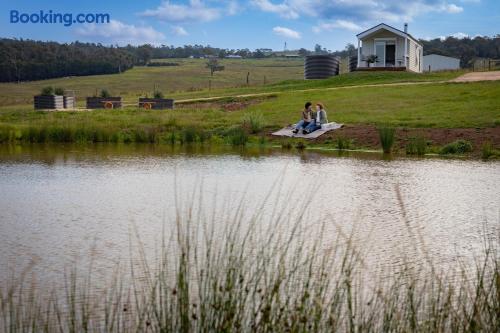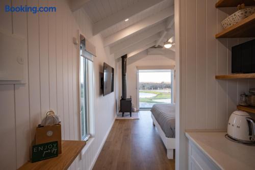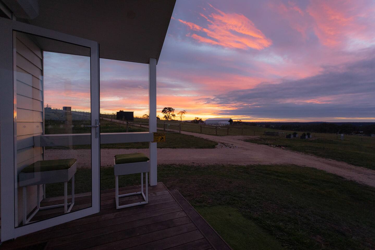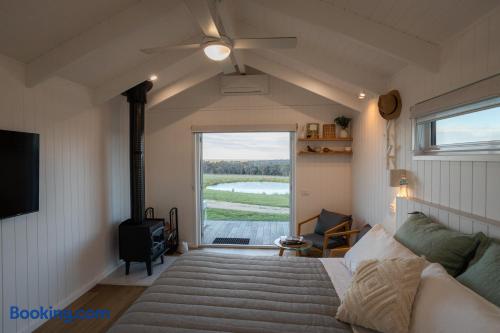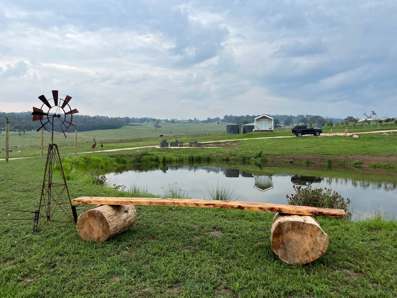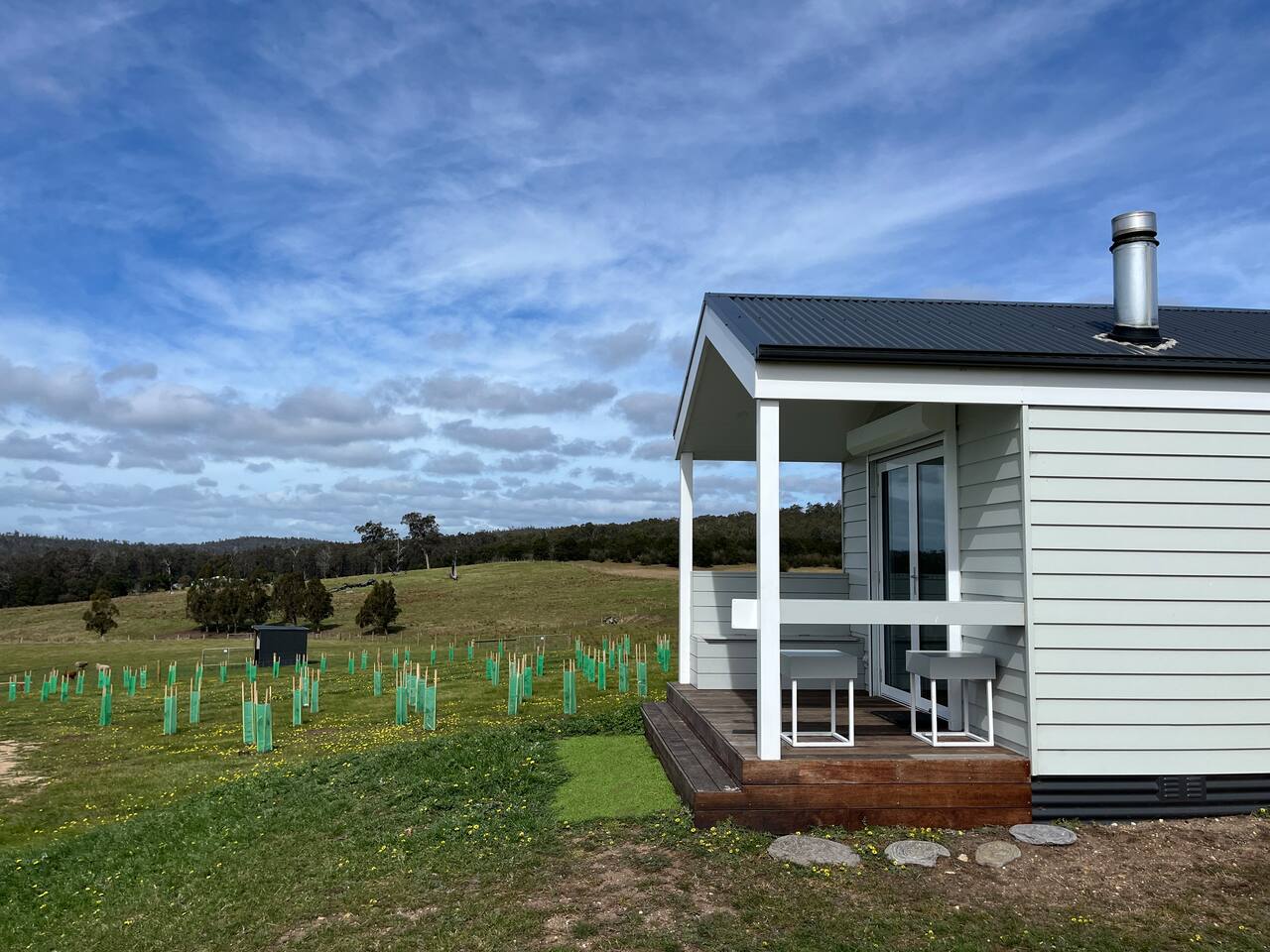 Set among rolling hills overlooking a wildlife pond, Banjo’s Cabin Gippsland offers a relaxed escape in Central Gippsland. Wake to sunny mornings at your outdoor brekkie bar, wander bush trails to nearby water holes or explore historic country towns. Enjoy Tinamba’s renowned dining, visit local wineries and breweries or settle into friendly country pubs. As evening falls, return for sunset drinks on the deck, spotting kangaroos as festoon lights reflect on the water beneath wide, starry skies.